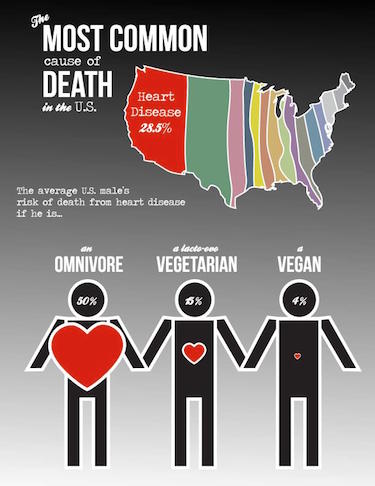 • A person who follows a vegan diet produces the equivalent of 50% less carbon dioxide, uses 1/11th oil, 1/13th water, and 1/18th land compared to a meatlover for their food.
