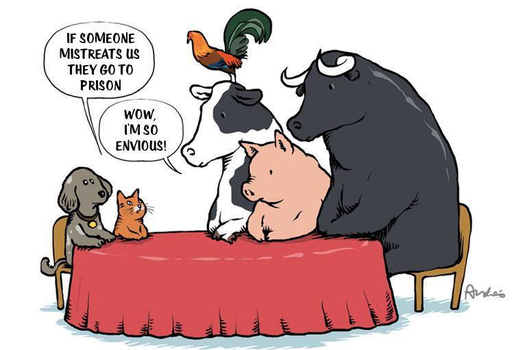 A cultural blind spot, against all odds we have accepted a huge injustice and we turn a blind eye. We are accepting a holocaust for the animals and have built nonsense arguments for our behavior.