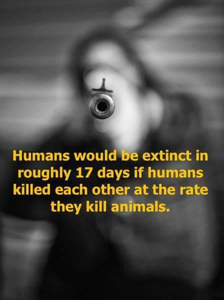 “Aren’t humans amazing? They kill wildlife – birds, deer, bobcats, cougars, coyotes, beavers, groundhogs, mice and foxes – by the million in order to protect their domestic animals and their feed. Then they kill domestic animals by the billion and eat them. This, in turn, kills people by the million, because eating all those animals leads to degenerative — and fatal — health conditions like heart disease, stroke and cancer. So then humans spend billions of dollars torturing and killing millions of more animals to look for cures. Elsewhere, millions of other human beings are being killed by hunger and malnutrition because food they could eat is being used to fatten domestic animals. Meanwhile, few people recognize the absurdity of humans, who kill so easily and violently, and then plead for “peace on Earth.”” (unknown)